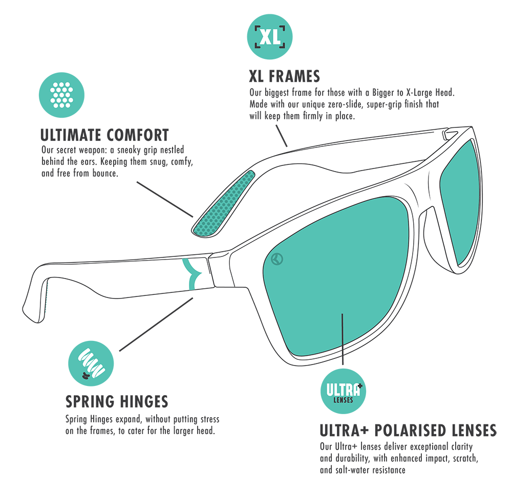 If you have a big head, and struggle finding sunglasses that fit, look no further than our Muckles range. Kyloe Muckles are specifically made for the XL head.