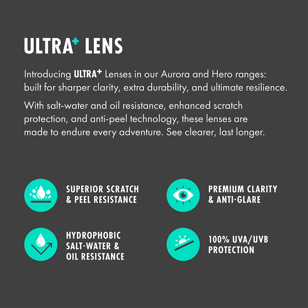 Equipped with premium, hydrophobic Ultra+ lenses, these shades effortlessly repel saltwater, oil, and moisture, maintaining crystal-clear vision all day. With triple-layer scratch resistance, you can trust them to handle the rough and tumble of beachside activities.